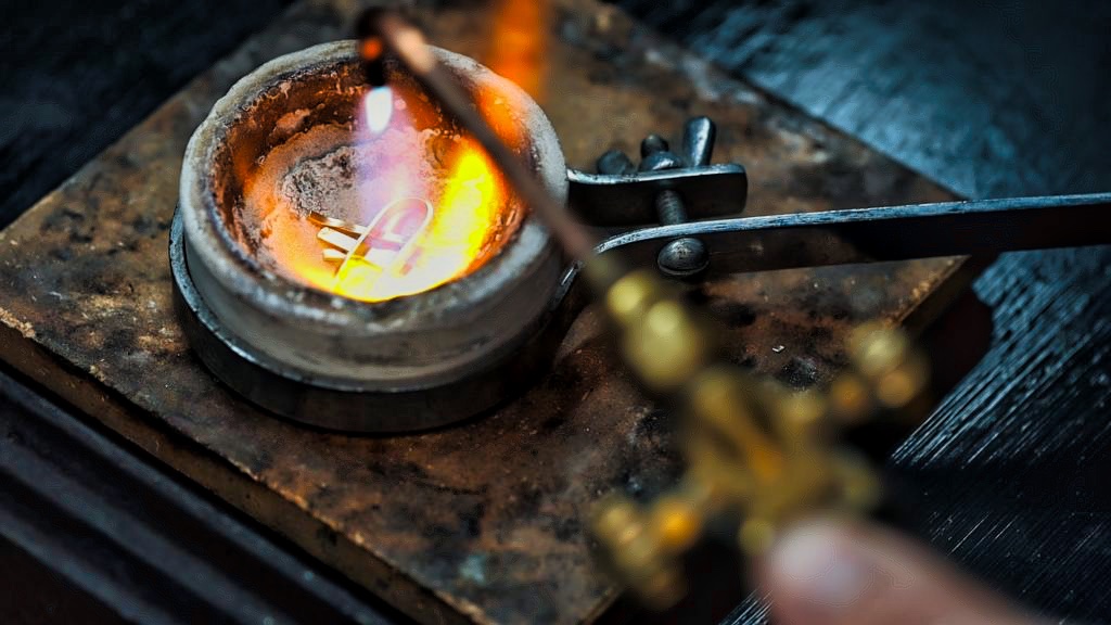 Re-heating the metal with a torch throughout the process to keep the metal malleable as you craft your ring.